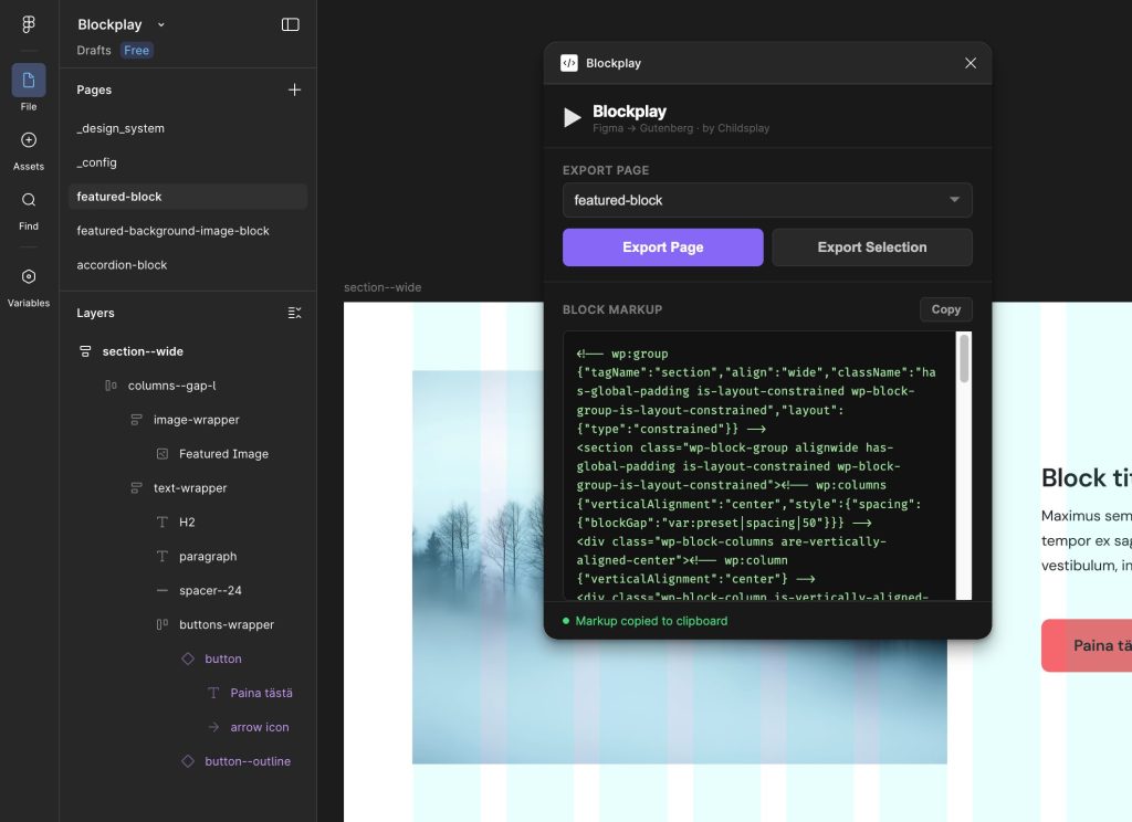 I developed a custom WordPress plugin that transforms Figma designs into production-ready code — from individual blocks to full pages, and even a structured theme.json — leveraging AI to streamline the workflow.