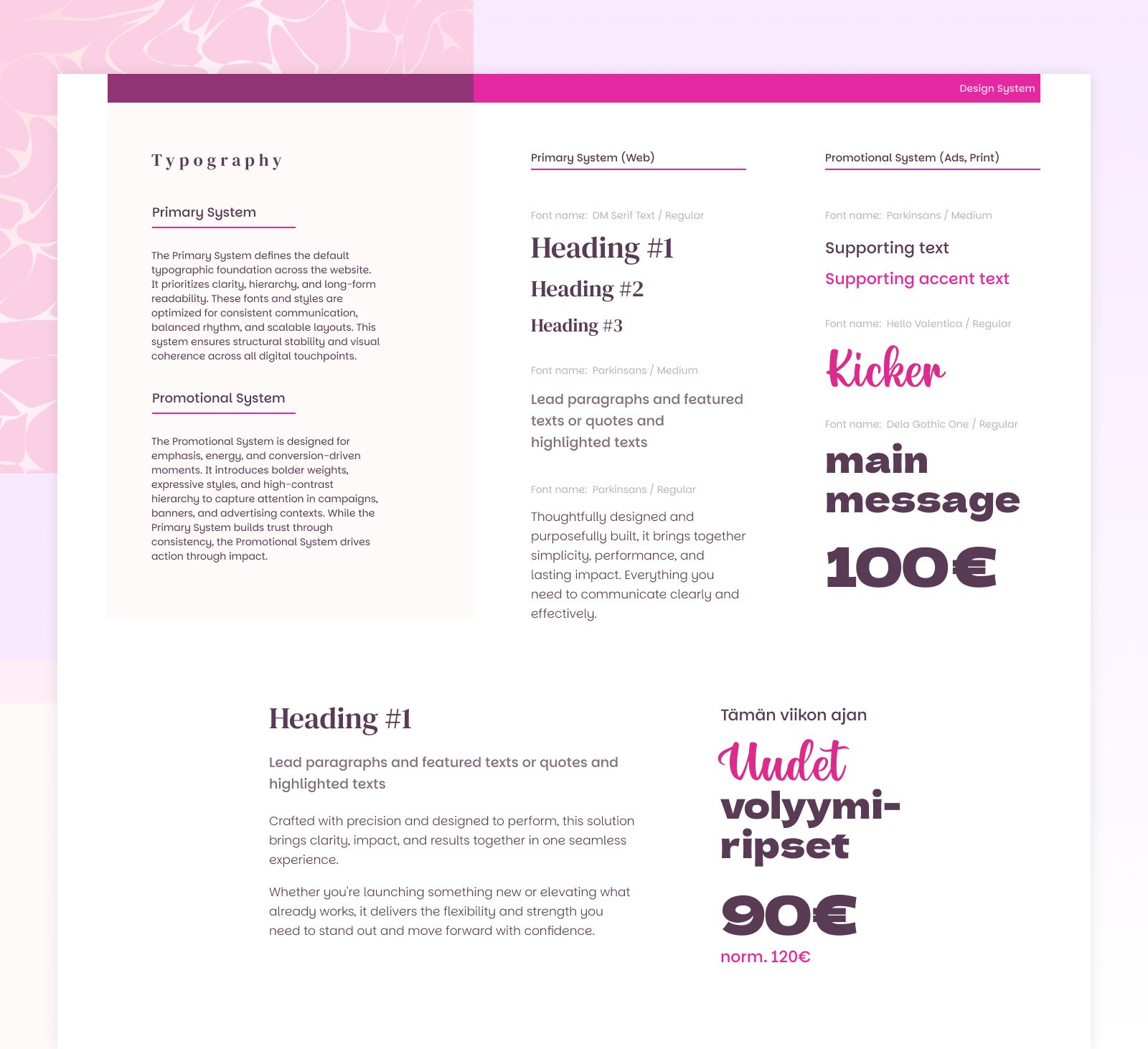 I created a two-part typography system after realizing that ads and banners often need extra boost and visibility. The Primary System handles default content, keeping readability and hierarchy consistent across the website. The Promotional System is bolder and more expressive, designed to grab attention and make key messages stand out in campaigns and banners.